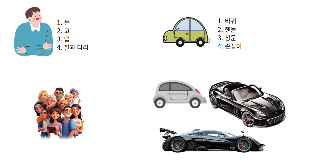 많은 자료에서 클래스를 '설계도'라고 표현하는데, 더 쉽게 생각하면 '사람'과 '자동차'를 예를 들 수 있다.