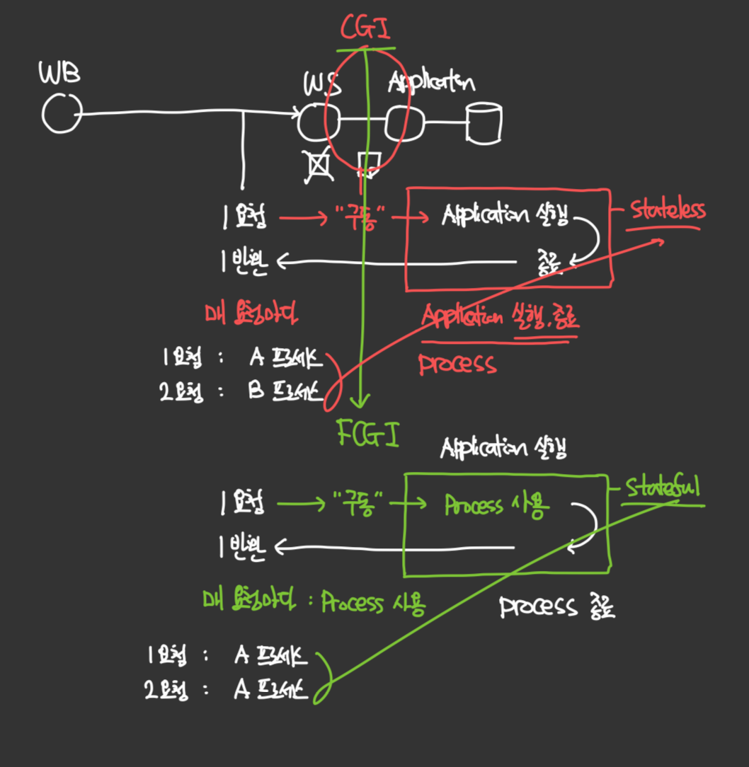 그래서 나온 FCGI ( Fast Common Gateway Interface )