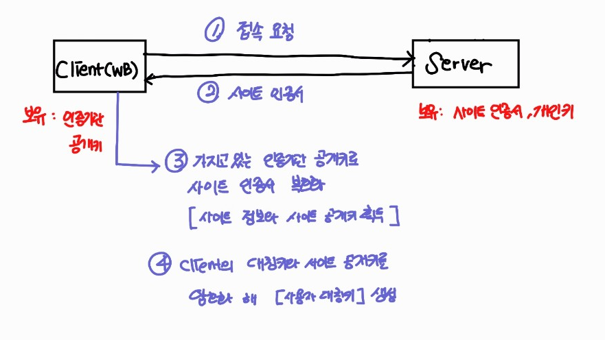 그러면 제일 처음 서버가 가지고 있던 사이트의 정보와 서버 공개키를 최종적으로 가지게 된다.