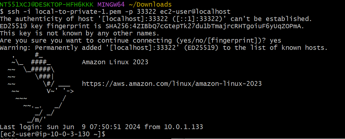 ssh -i local-to-private-1.pem -p 33322 ec2-user@localhost