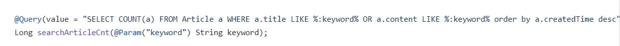 앞선 내용에서는 @Query를 사용해서 직접 JPQL의 쿼리를 작성했다. 하지만, 직접 문자열을 입력하기 때문에 컴파일 시점에 에러를 잡지 못한다. 문자열이 잘못된 경우에는 어플리케이션이 실행된 후 로직이 실행되고 나서야 오류를 발견할 수 있기 때문에, 배포 후에 큰 리스크를 떠안게 될 수도 있다.