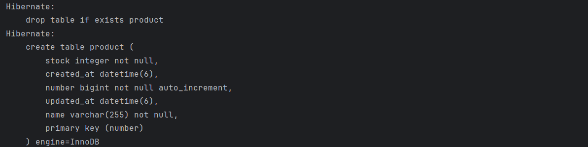 설정 후 간단한 Entity를 만들고 실행하면 아래와 같이 테이블이 생성된다.