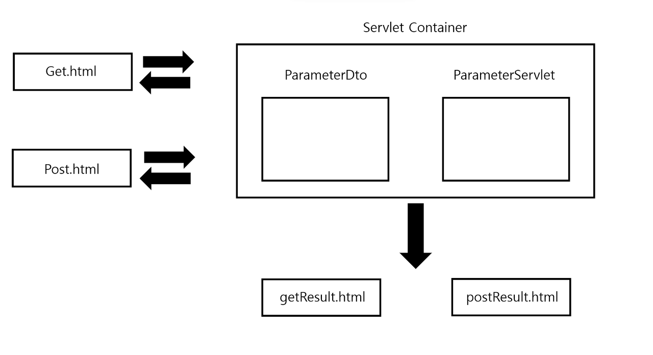 get은 html에서 이미 값을 let params = "?job="+job+"&pageNo="+pageNo+"&searchWord="+searchWord;와 같은 형태로 전송하기 때문에 getParameter로 받아오기만 하면 된다.